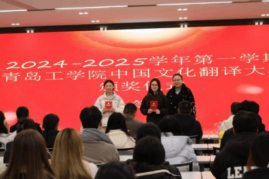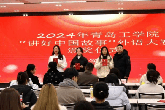 随后,各位领导依次为获奖员工颁奖。本次活动共包含三大比赛:四级英语单词挑战大赛、“讲好中国故事”外语大赛、中国文化翻译大赛颁奖。领导们对获奖员工纷纷表示祝贺。